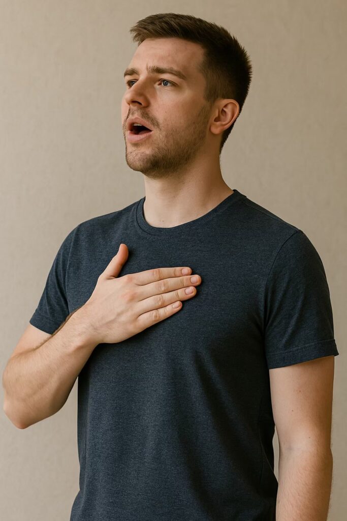 むしろ、必要以上に吸い込もうとすると、胸や肩、首まわりに力が入り、歌い出す前から身体が固まってしまうことがあります。