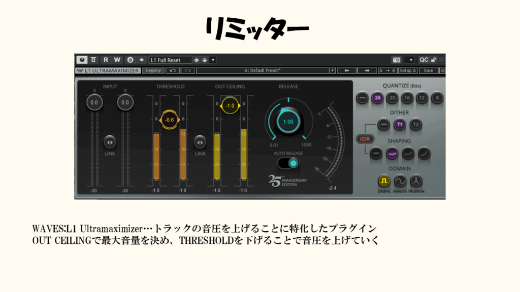 こうしてトラックを完璧に調整し終われば、あとはリミッターで目指す音圧まで調整するだけです。