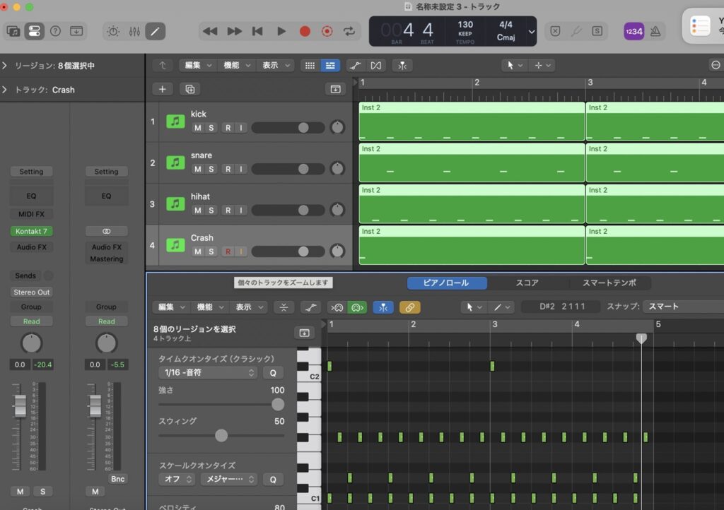 ではまずドラムのリズムを決めましょう。