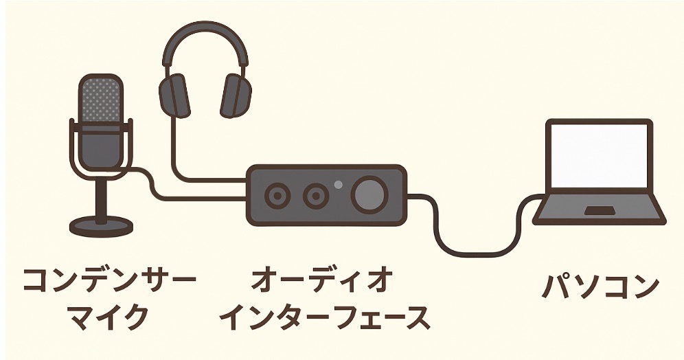 オーディオインターフェースは、マイクやギターをパソコンにつなぐための“変換機”のようなものです。